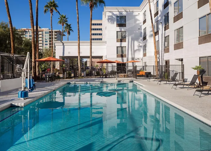 Featuring a storage for belongings and a restaurant, the contemporary 3-star Hilton Garden Inn Phoenix Airport North is placed at a 7 km distance from Chase Home Field. The family inn lies nearly a 15-minute ride from the public metropolitan research Arizona State University, and offers a grill restaurant and a heated swimming pool onsite.